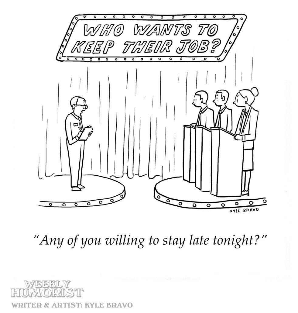 CARTOON: Elimination RoundFebruary 23, 2026/in Cartoons/by Kyle Bravo About the AuthorLatest PostsKyle BravoCartoonist: New Yorker, Sat Eve Post, Antigravity, Alta, The Oldie, etc. See it all here. CARTOON: Elimination RoundCARTOON: The LeftoversCARTOON: Ground Assets https://weeklyhumorist.com/wp-content/uploads/2026/02/WH-cartoon-template-jobshow-feat.png 330 432 Kyle Bravo https://weeklyhumorist.com/wp-content/uploads/2018/04/WH-color-logo-pattern-b.png Kyle Bravo2026-02-23 04:03:172026-02-23 04:03:17CARTOON: Elimination Round