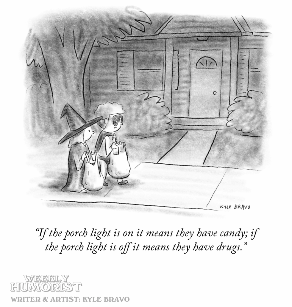 CARTOON: Sweets to StreetsOctober 31, 2025/in Cartoons/by Kyle Bravo About the AuthorLatest PostsKyle BravoCartoonist: New Yorker, Sat Eve Post, Antigravity, Alta, The Oldie, etc. See it all here. CARTOON: Sweets to StreetsCARTOON: 50 Shades of NopeCARTOON: Marriage: A Love-Hate Relationship https://weeklyhumorist.com/wp-content/uploads/2025/10/WH-cartoon-template-drugs-feat.png 330 432 Kyle Bravo https://weeklyhumorist.com/wp-content/uploads/2018/04/WH-color-logo-pattern-b.png Kyle Bravo2025-10-31 05:04:532025-10-31 05:04:53CARTOON: Sweets to Streets