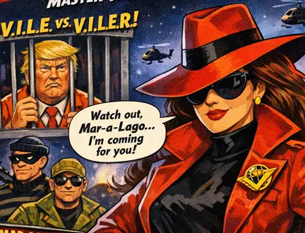 Since 1985, V.I.L.E. has been at the forefront of implausible large-scale criminal actions. While we have carried out elaborate heists concerning objects, symbols, and general perceptions of national significance, we have always respected state autonomy and have never stolen a nation in its entirety. In my capacity as the face of egregious, unbelievable pilfering, I unequivocally condemn the activities of the Trump Administration as contrary to the spirit of international thievery standards.
