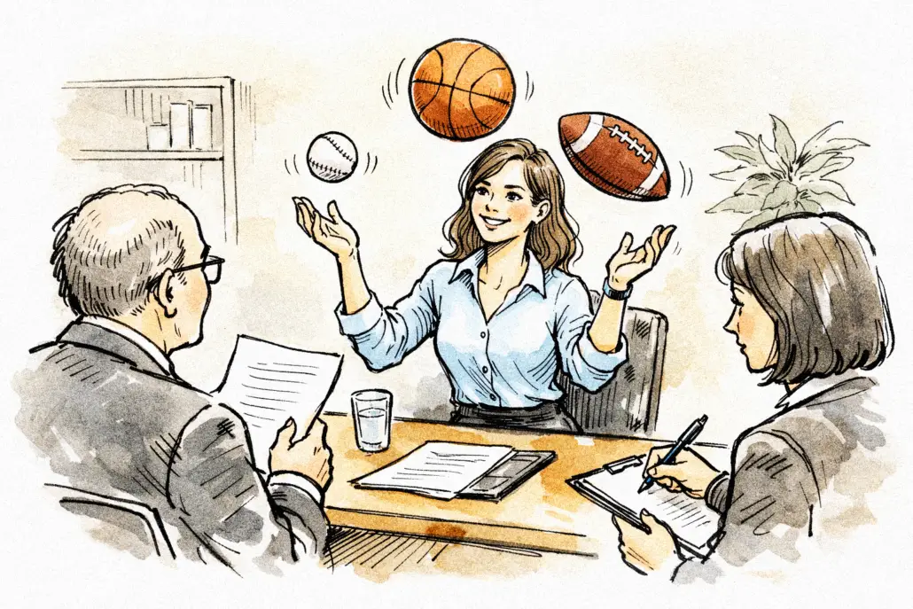 I’m also very connected to baseball…Oh, you’ve heard enough? Great, I love how we have this easy rapport and a mutual understanding because of our shared love of playing sports. I have a few team-building ideas right off the bat (like in baseball!) that I’d love to run by you.