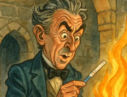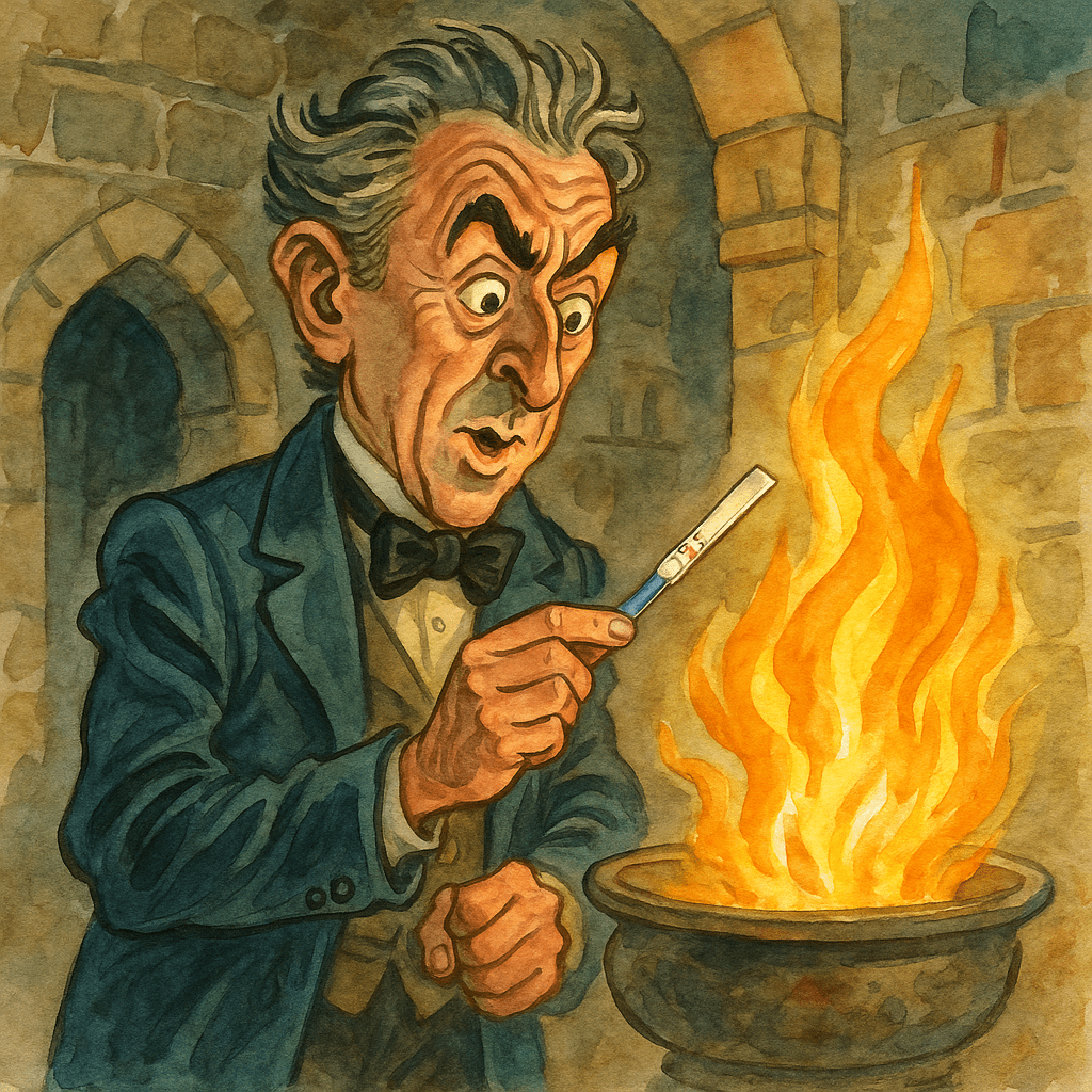 ALAN CUMMING: Annabel, Jess, and Morgan, welcome to the Fire of Truth. It is time for the final vote. If you think no one here is pregnant, throw a generic ovulation test strip into the fire and the fire will burn pink. But if you think a Traitor remains, throw a ClearBlue Advanced Ovulation Kit into the fire and it will burn blue!